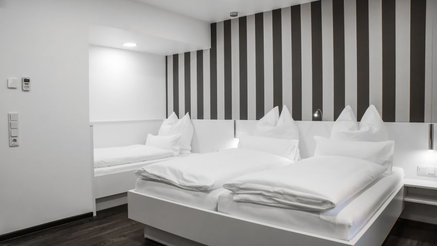 Unsere zwei verfügbaren Familienzimmer, sind nach dem Appartement die größten Zimmer im Hotel und verfügen jeweils über ein drittes Federkernbett im Raum (90x200 cm). Die Badezimmer sind extra groß, sodass man sich problemlos zu zweit oder auch zu dritt im Raum bewegen kann. Eines der Highlights ist die persönliche Terrasse zum Innenhof, die ausschließlich vom Gast des Familienzimmers genutzt werden kann.